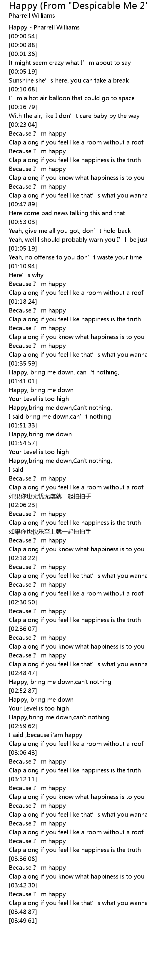 | [00:00.00] | Happy - Pharrell Williams |