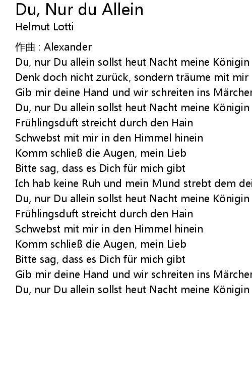 | Du, nur Du allein sollst heut Nacht meine K nigin sein |