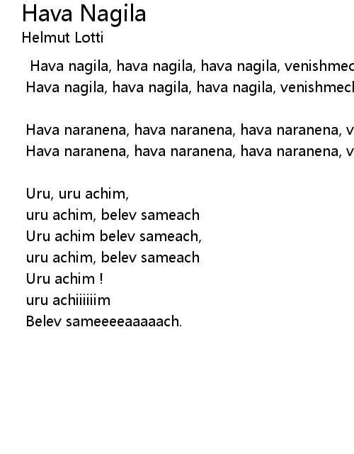 | Hava nagila, hava nagila, hava nagila, venishmecha | |