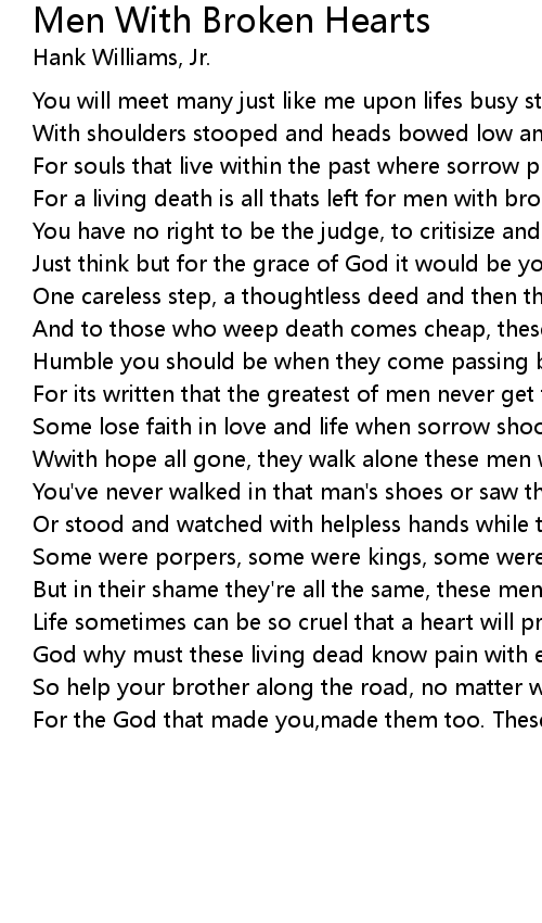 Wwith hope all gone, they walk alone these men with broken hearts. |