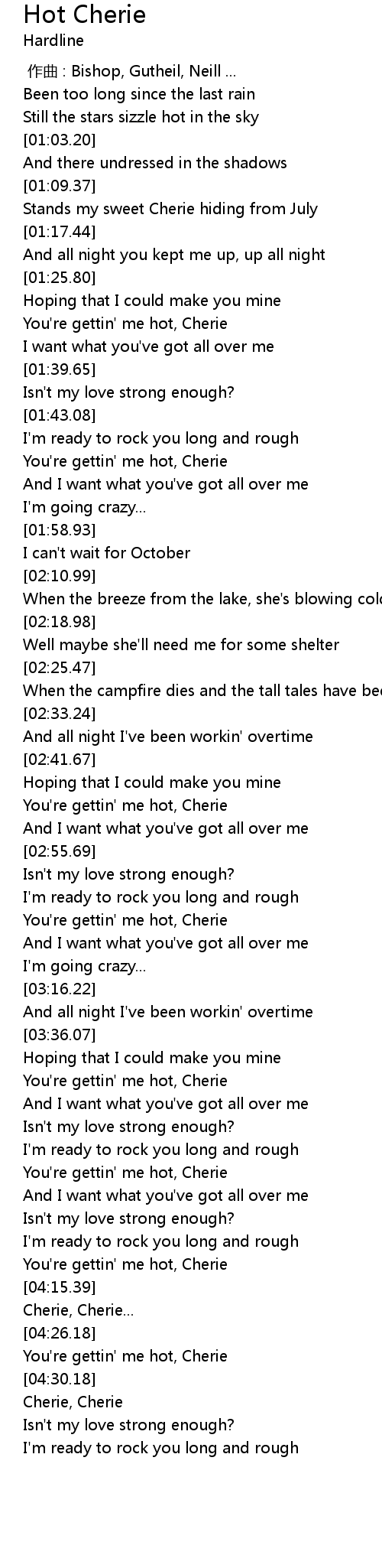 | [03:03.31] | You're gettin' me hot, Cherie |