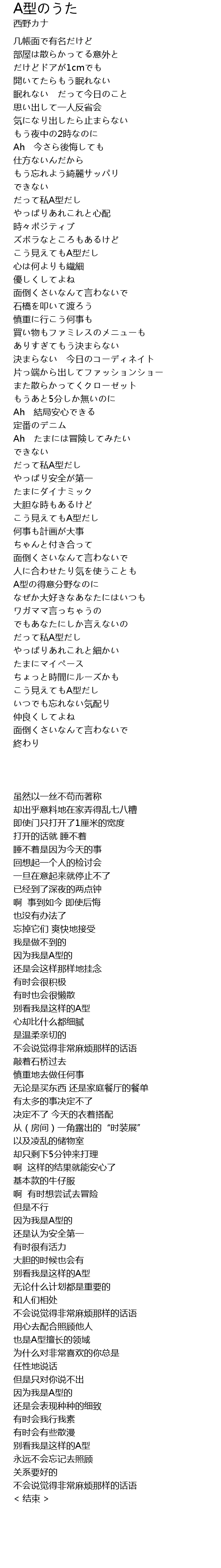 | [01:54.06] | だって私A型だし |