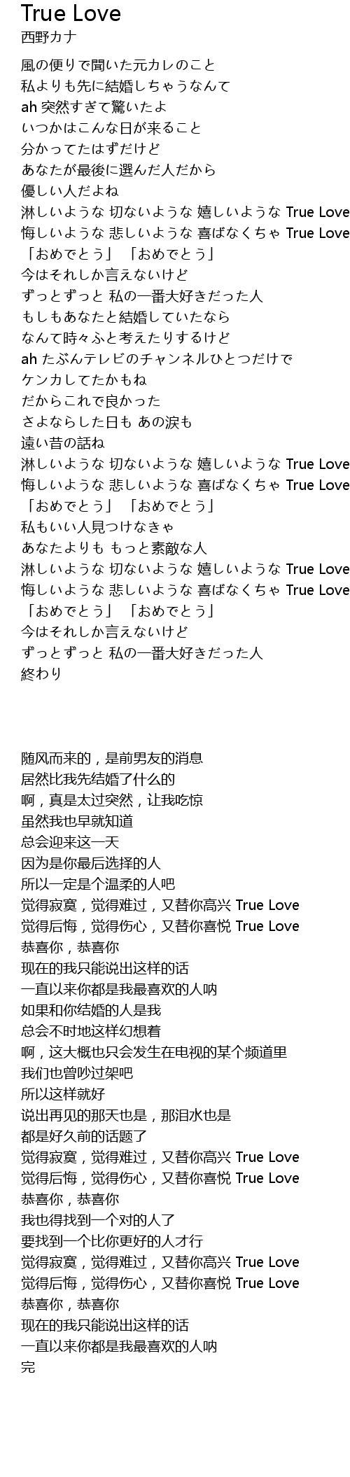 | [00:55.34] | 淋しいような 切ないような 嬉しいような True Love |