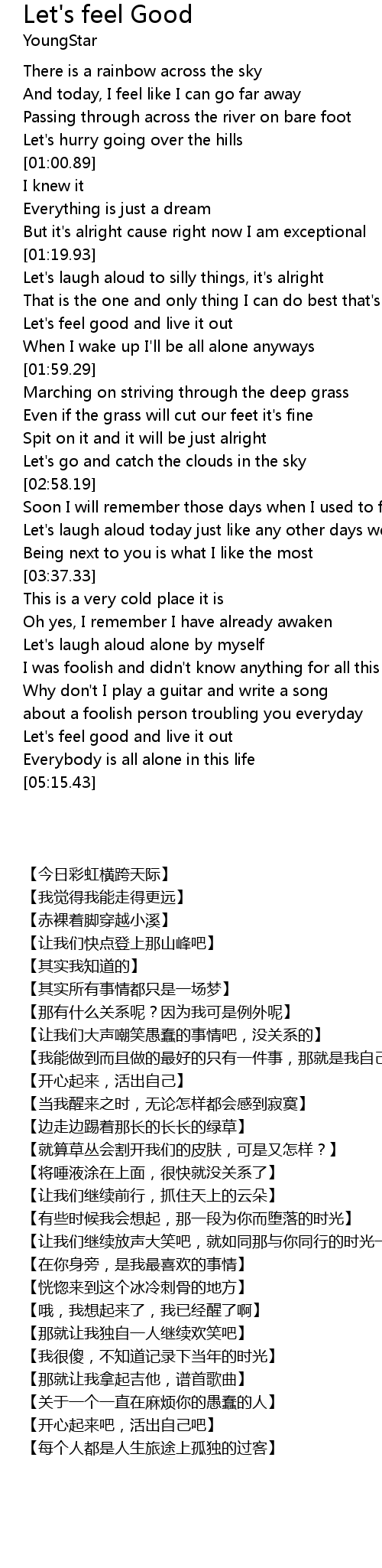 | [04:56.63] | Let's feel good and live it out |