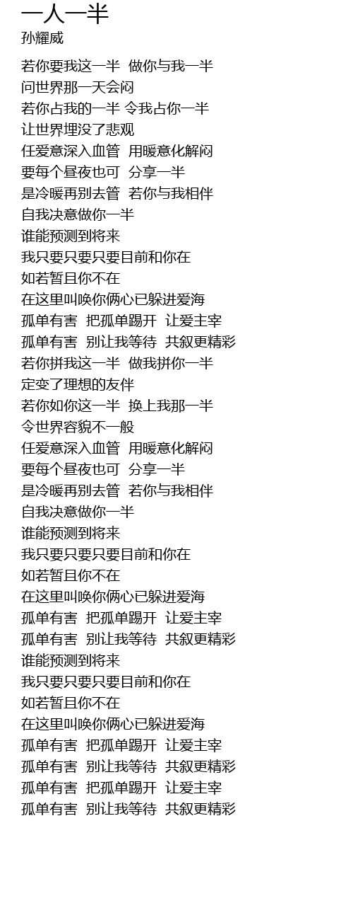 | [00:24.16] | 若你要我这一半 做你与我一半 |