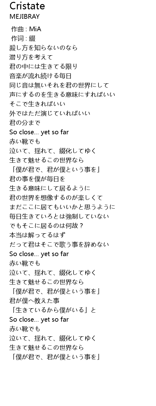 | [03:16.000] | 泣いて、揺れて、綴化してゆく |