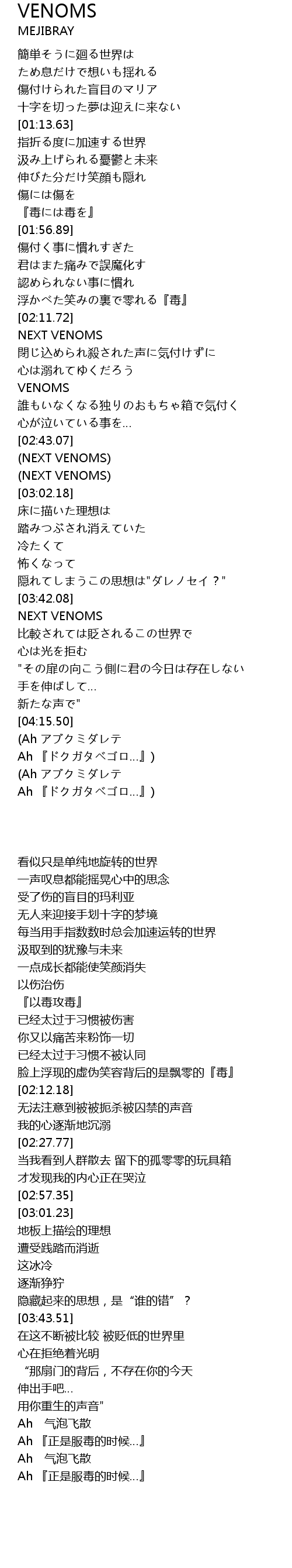 | [03:01.23] | NEXT VENOMS |