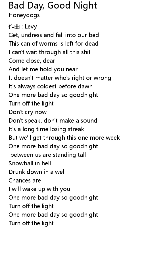 | One more bad day so goodnight | |