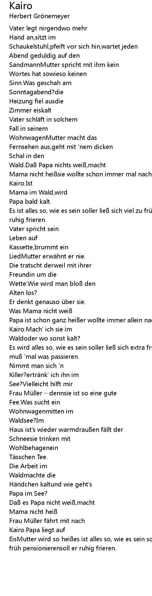 | Es ist alles so, wie es sein soller lie sich viel zu frü h pensionierensoll er ruhig frieren. | |