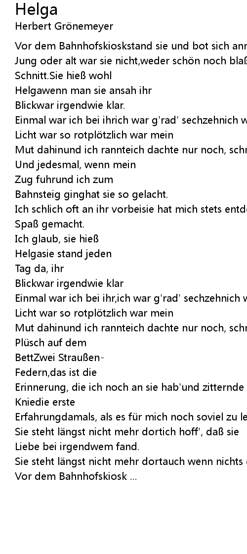 | Einmal war ich bei ihr, ich war g' rad' sechzehnich wei noch, das | |