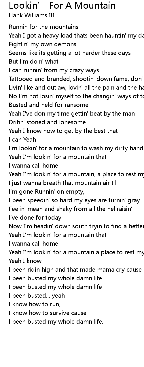 Yeah I'm lookin' for a mountain, a place to rest my bones and |