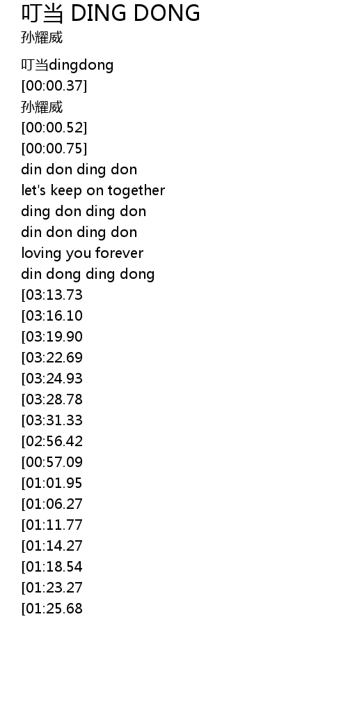 | [03:42.54][03:24.93][02:47.50][01:45.97][00:39.79] | ding dong ding dong |