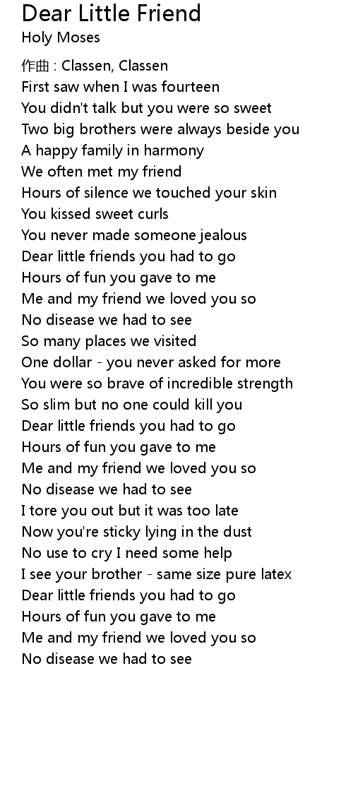 | Song | Dear Little Friend |