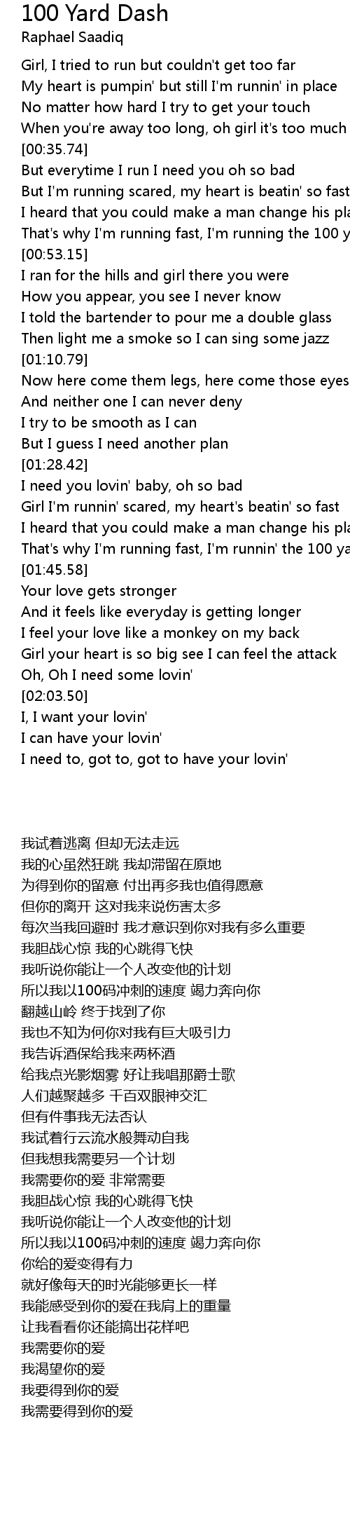 That's why I'm running fast, I'm runnin' the 100 yard dash |