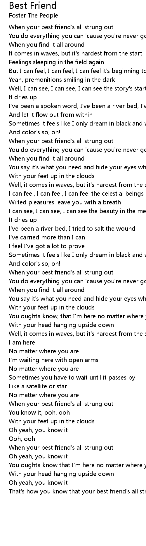 That's how you know that your best friend's all strung out |