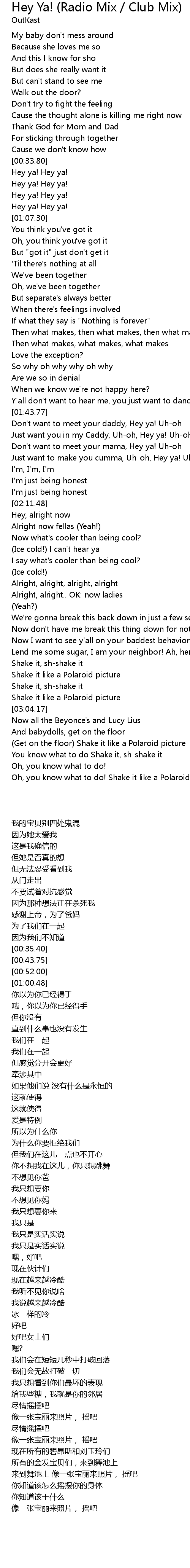 Just want you in my Caddy, Uh-oh, Hey ya! Uh-oh |
