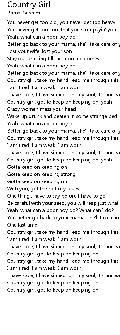 Country girl, got to keep on keeping on, yeah |