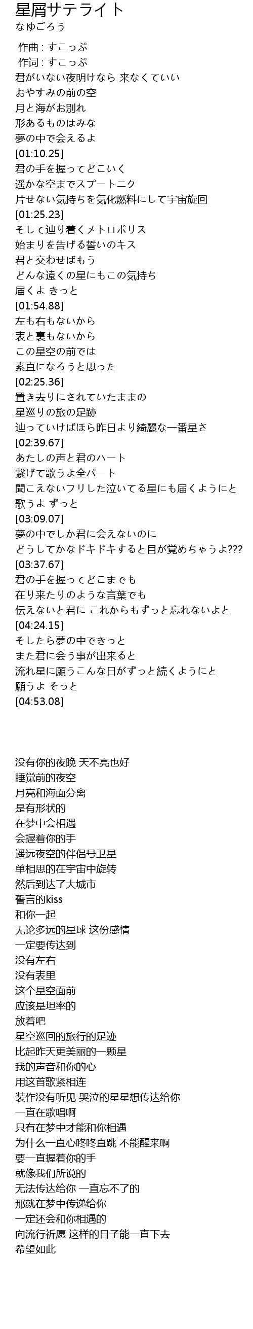 | [04:32.15] | 流れ星に願うこんな日がずっと続くようにと |