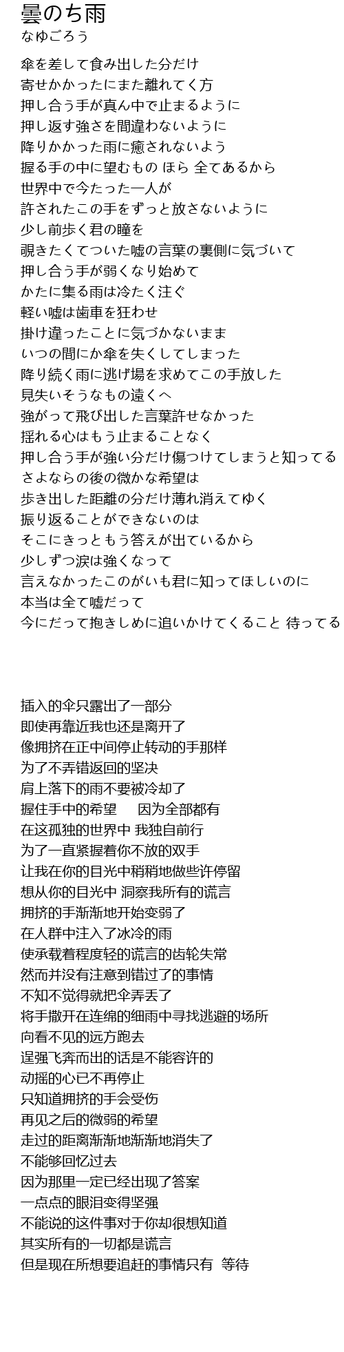 | [02:00.44] | いつの間にか傘を失くしてしまった |
