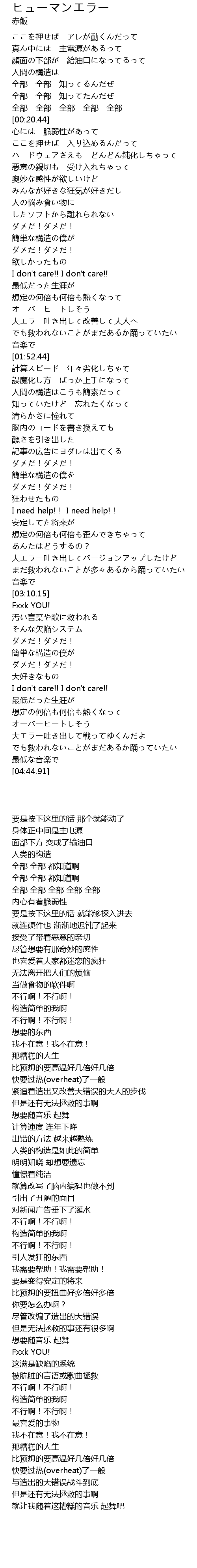 | [04:23.20] | 大エラー吐き出して戦ってゆくんだよ |