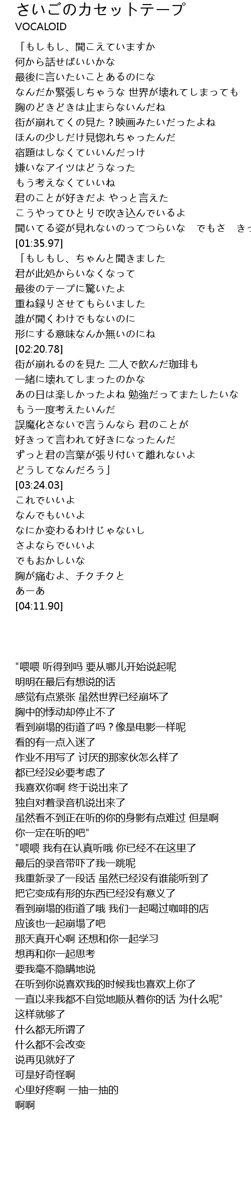 | [01:55.71] | 「もしもし、ちゃんと聞きました 君が此処からいなくなって |