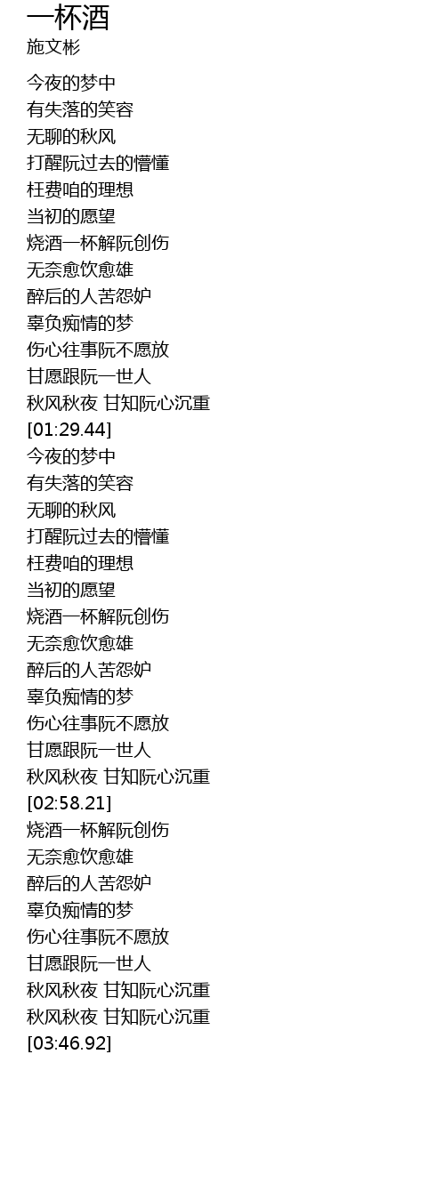 | [00:53.56] | 烧酒一杯解阮创伤 |