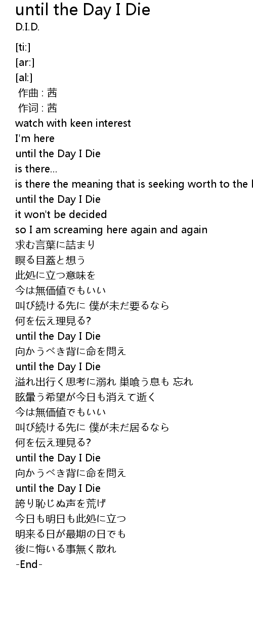 | [00:18.32] | until the Day I Die |
