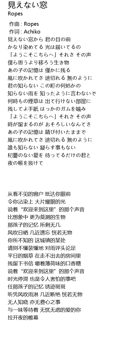 | [00:35.73] | 見えない窓から 君の目の前 |