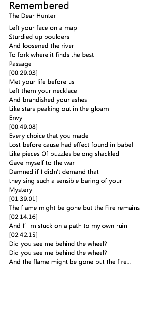 | [01:59.99] | The flame might be gone but the Fire remains |