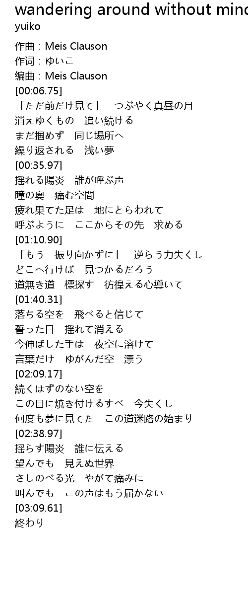 | [02:38.97] | 揺らす陽炎 誰に伝える |