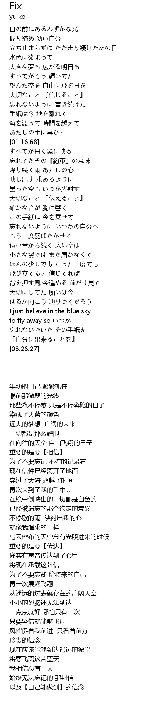 | [03:15.18] | to fly away so いつか |
