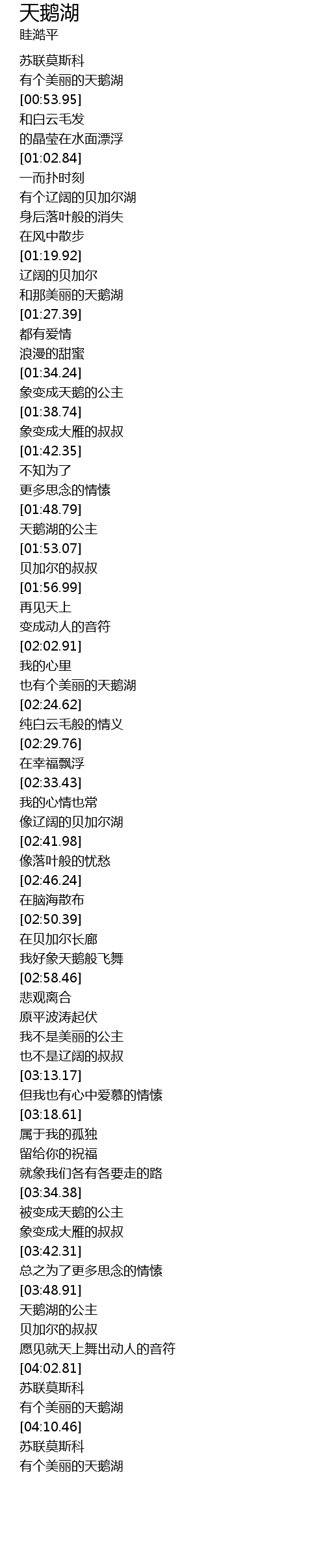 | [04:13.88] | 有个美丽的天鹅湖 |