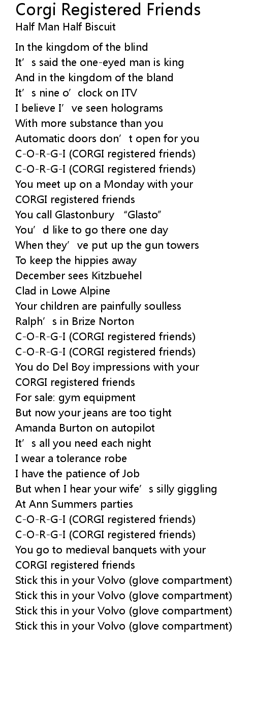 | Song | Corgi Registered Friends |