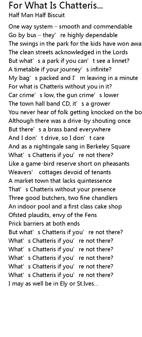 | Song | For What Is Chatteris... |