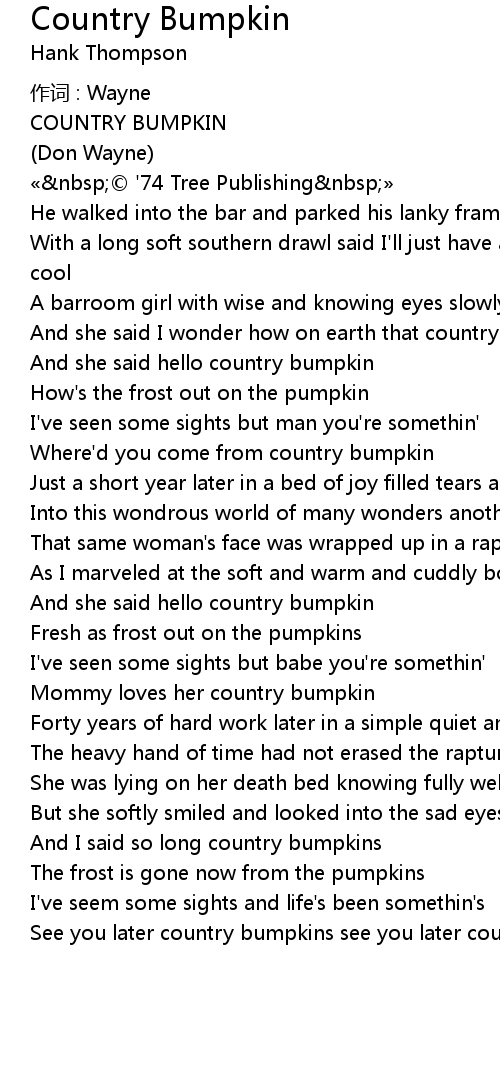 | And she said hello country bumpkin | |