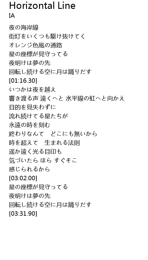 | [00:47.60] | 街灯をいくつも駆け抜けてく |