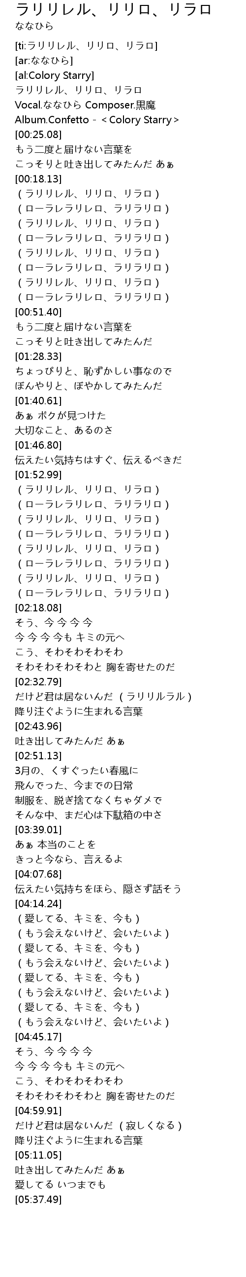 | [00:20.37] | ラリリレル、リリロ、リラロ |