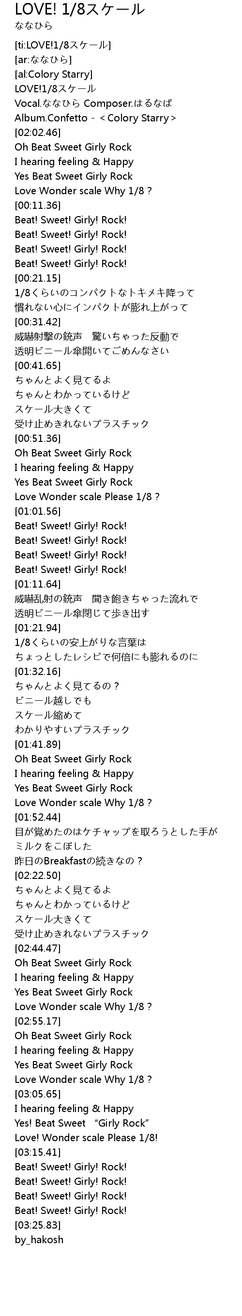 | [03:15.72] | Beat! Sweet! Girly! Rock! |