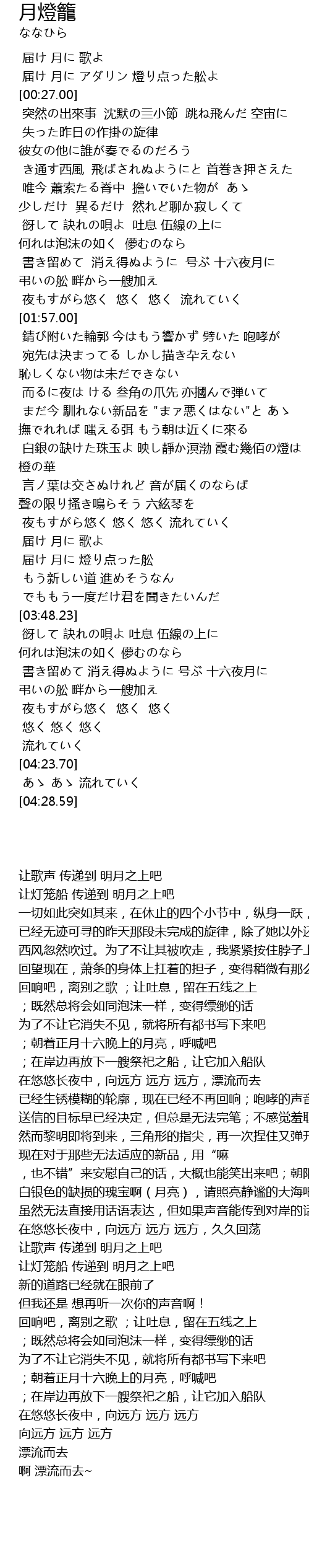 | [00:14.18] | 届け 月に アダリン 燈り点った舩よ |