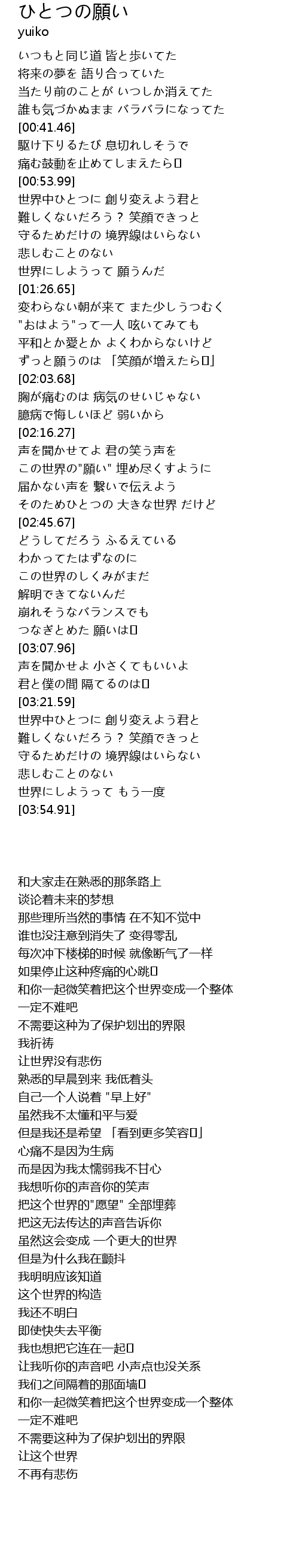 | [02:37.98] | そのためひとつの 大きな世界 だけど |