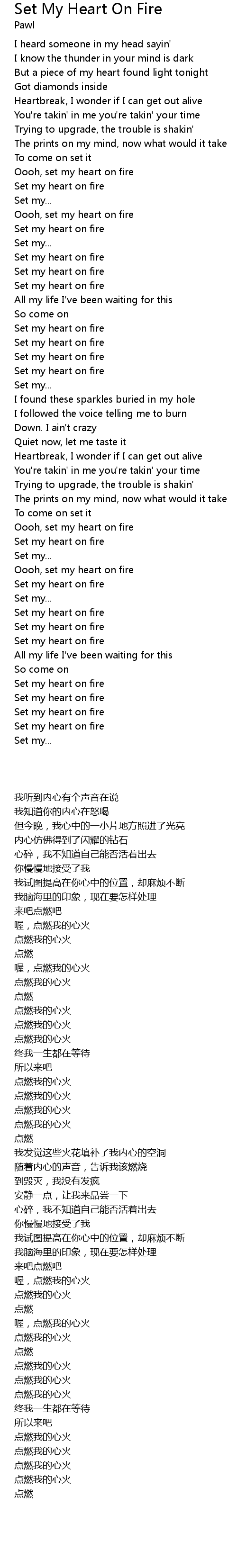 Set my heart on fire |