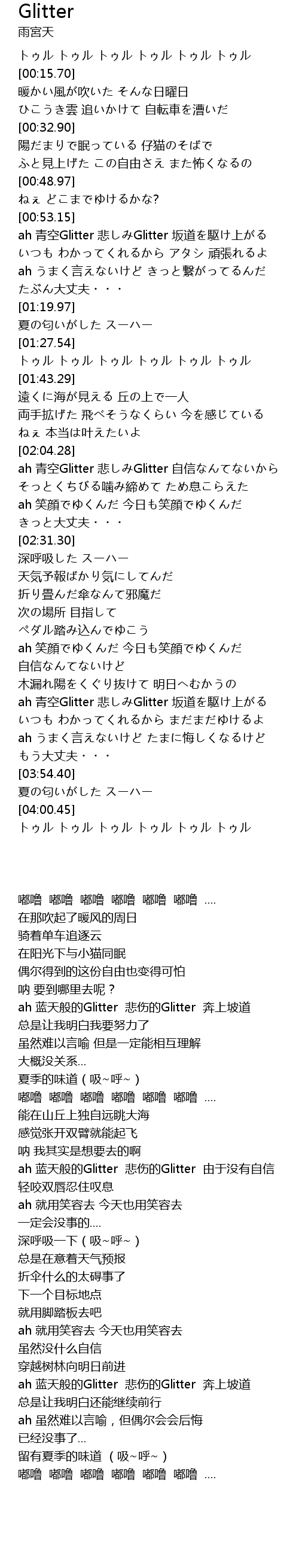 | [00:53.54] | ah 青空Glitter 悲しみGlitter 坂道を駆け上がる |