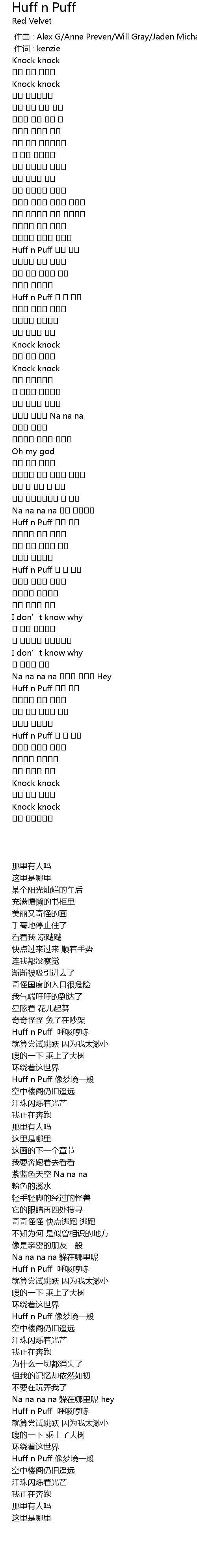 | [02:18.560] | Huff n Puff 숨이 헉헉 |