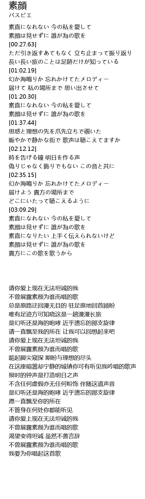 | [03:35.72] | 素顔は見せずに 誰が為の歌を |