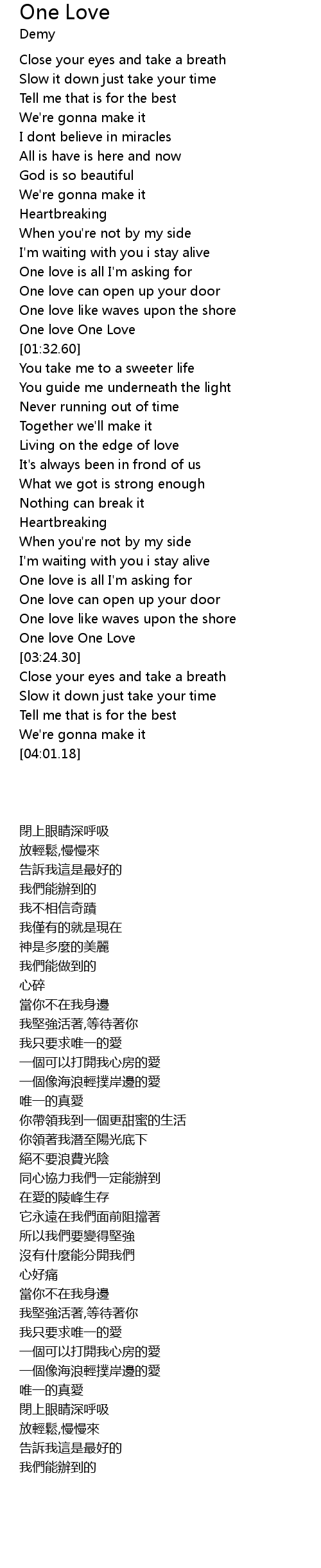 | [03:13.84] | One love One Love |