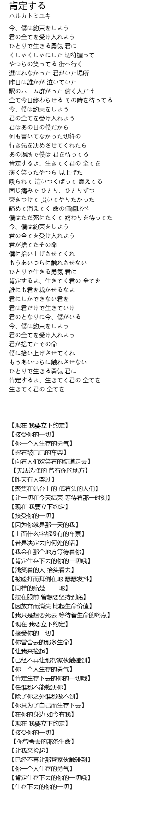 | [04:28.70] | 肯定するよ、生きてく君の 全てを |