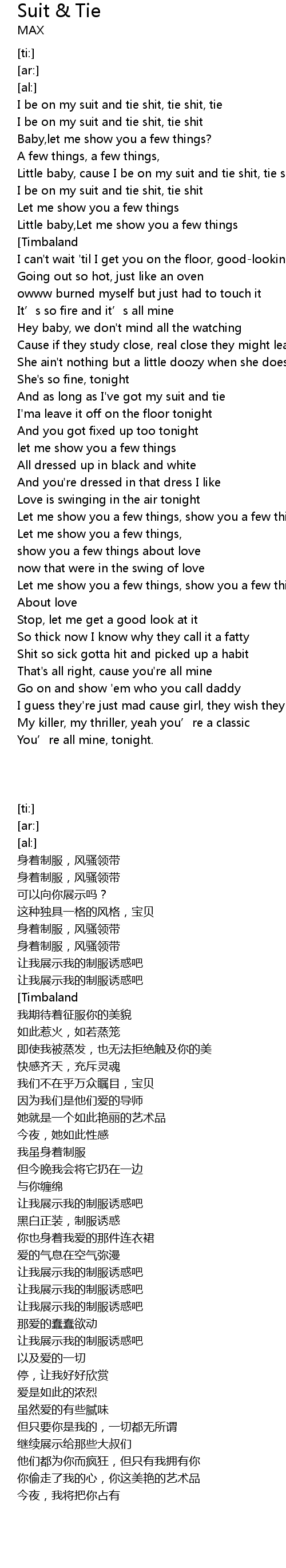 | [00:19.05] | Little baby, cause I be on my suit and tie shit, tie shit |