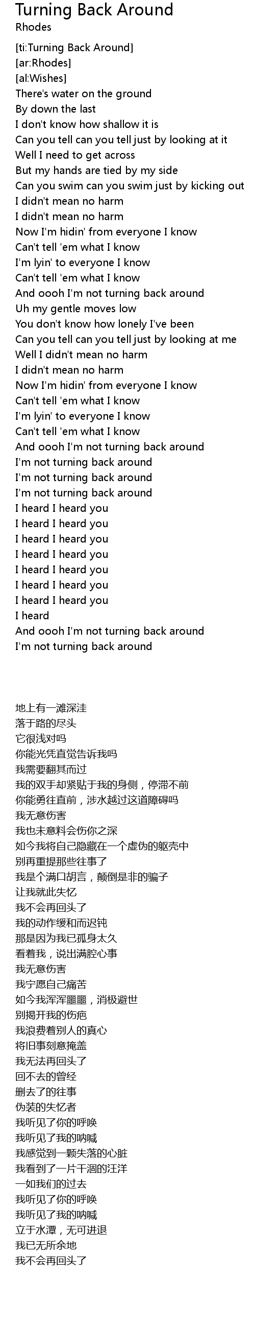 | [ti:Turning Back Around] | |