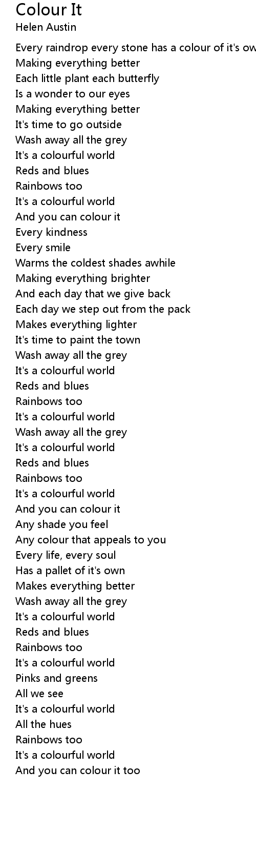 Every raindrop every stone has a colour of it's own |
