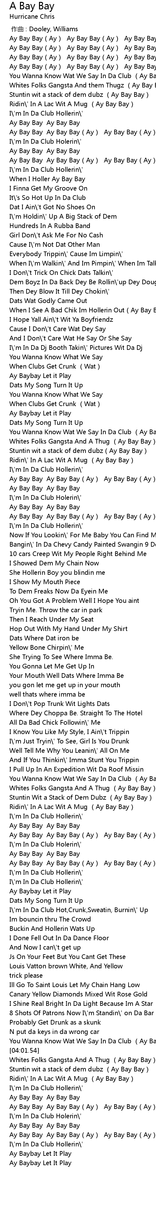 | [01:43.58] | You Wanna Know Wat We Say In Da Club Ay Bay Bay |